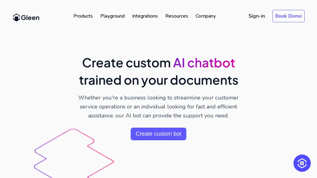 Gleen AI is a highly effective and versatile chatbot tool that enables businesses and individuals to create personalized AI chatbots. Whether you’re a business aiming to streamline your customer service operations or an individual in need of quick and efficient assistance, Gleen AI is here to meet your requirements. With Gleen AI, you have the ability to train your chatbot using documents and minutes, ensuring that it is well-informed and capable of delivering accurate responses. Additionally, the platform offers seamless integrations with various products, allowing you to effortlessly incorporate the chatbot into your existing systems. Gleen AI takes great pride in being a dependable and proficient generative AI platform that aims to delight customers worldwide. Sign up today for free and discover the immense power of Gleen AI firsthand.