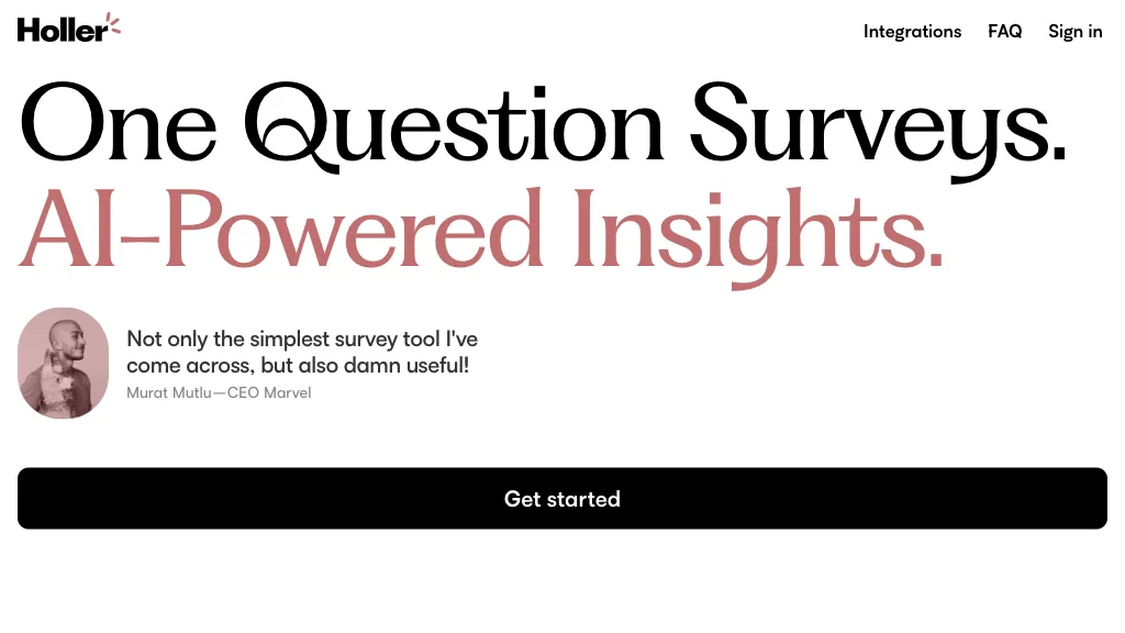 Go Holler is a survey platform powered by AI, designed to facilitate the quick and accurate collection of data for businesses. With its user-friendly and intuitive interface, Go Holler makes data collection a seamless process. Additionally, Go Holler offers AI-driven insights that assist users in comprehending and analyzing the collected data. By leveraging these insights, businesses can effortlessly gain valuable information about their customers and overall operations.