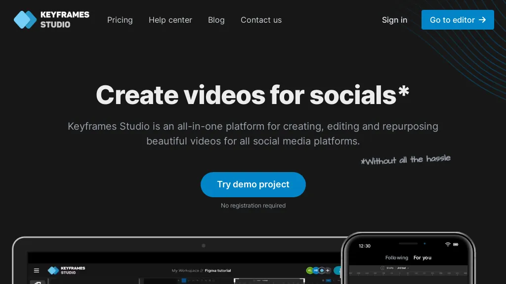 Keyframes Studio is a comprehensive platform designed specifically for the creation and editing of videos for social media. This all-in-one tool offers a range of features that are powered by AI, making it easier than ever to repurpose content, optimize videos for both vertical and horizontal viewing, generate subtitles automatically, and utilize a resourceful yet intuitive editor. With Keyframes Studio, users have the ability to resize, trim, crop, add images and sound effects, collaborate with teams, and export videos directly to social media platforms. This platform is ideal for content creators, digital agencies, and individuals who are seeking to create captivating videos for a variety of purposes. By simplifying the video editing process, Keyframes Studio enables users to effectively reach their target audience.