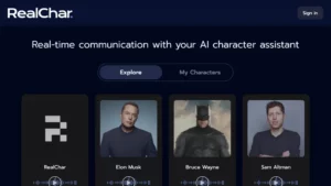 RealChar is an AI character assistant tool that enables users to engage in real-time communication with various characters directly from their browser. The platform offers a wide range of characters to choose from, and users also have the option to create their own custom characters. With the inclusion of audio tags, users can have chat conversations with virtual personas, famous individuals, and even fictional characters such as Elon Musk, Bruce Wayne, Sam Altman, Steve Jobs, Mark Zuckerberg, and many more.