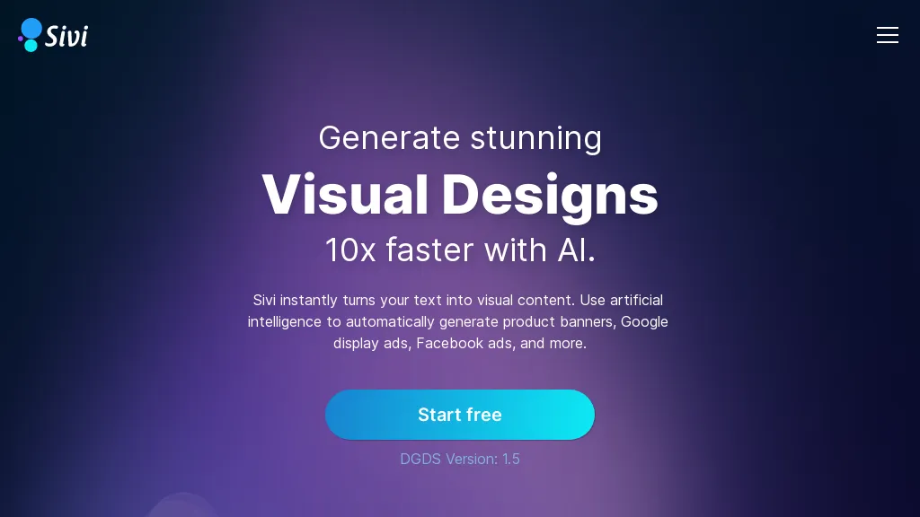 10 times Faster Visual Design Generation with Sivi AI. Sivi AI is a revolutionary tool that swiftly transforms your written content into captivating visual designs. Harness the power of artificial intelligence to effortlessly produce dynamic product banners, engaging Google display ads, and captivating Facebook ads, plus many more astounding visuals to elevate your brand presence.