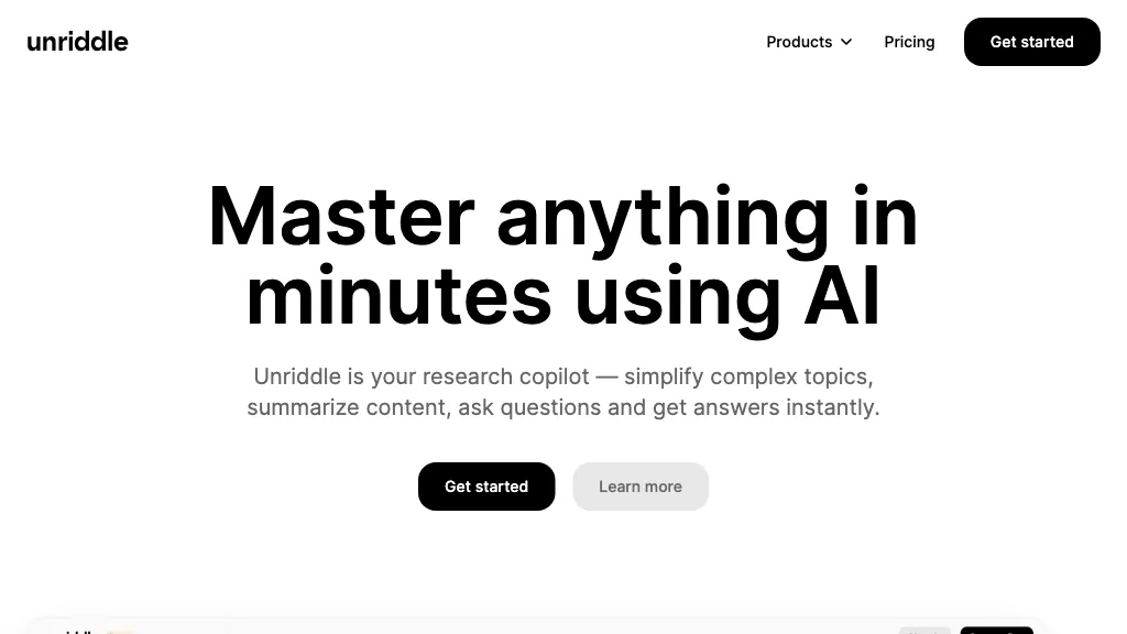 Unriddl is a revolutionary tool backed by artificial intelligence that aims to streamline the understanding of intricate subjects and condense information. Its browser extension enables users to swiftly search for and comprehend pertinent details, receiving instant answers from various sources like documents, PDF files, and web articles. This exceptional tool assists researchers in exploring ideas more efficiently while enhancing their overall workflow. With Unriddl, users can minimize the time spent on reading, effortlessly query documents, summarize articles, and avail numerous other useful features.